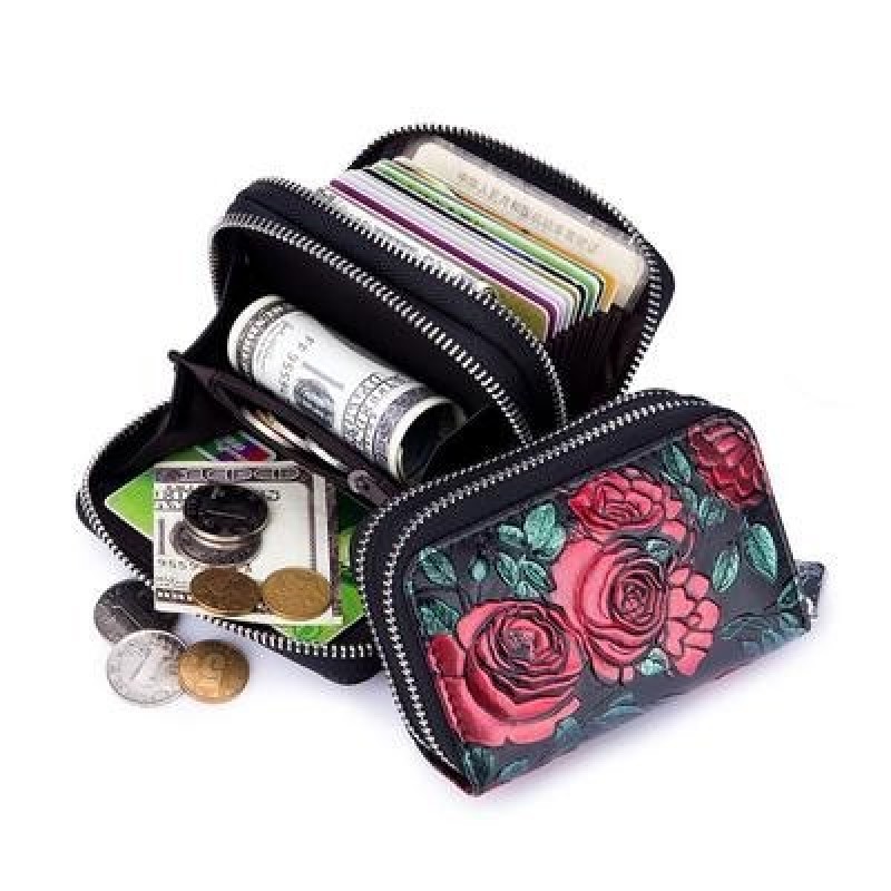 Мода Кожа Женщины Держатель кредитной карты Кошелек Двойная молния Большая емкость 3D Роза Цветок Пе ₽1800.0 |